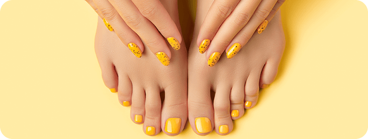 Soak, nails trimming and shaping, cuticle grooming,lotion, massage & polish.